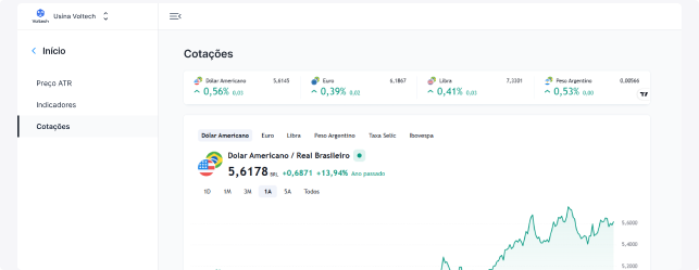 Acesse cotações de mercado em tempo real, com dados atualizados sobre preços de commodities e do ATR, tendências, indicadores e previsão do tempo